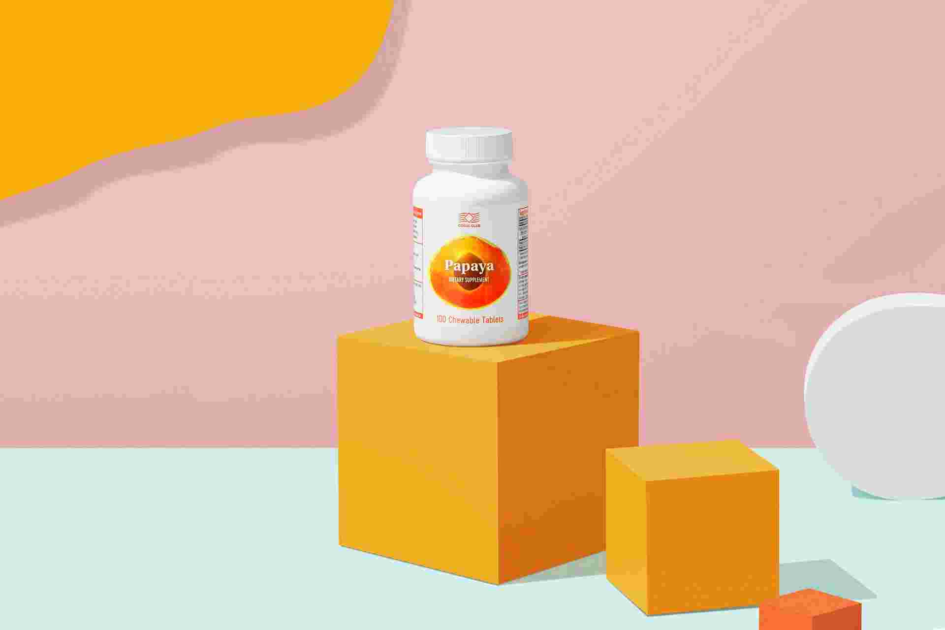Papaya (fruit) powder 30 mg; Papain 3 mg; other ingredients.