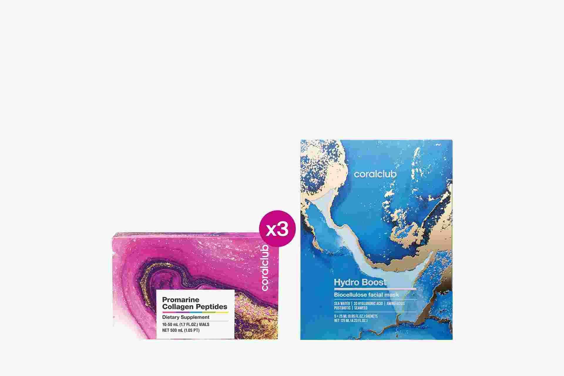 Promarine Collagen Peptides Set (1-month course) & Bio-cellulose Face Masks Hydro Boost (5 sachets)
